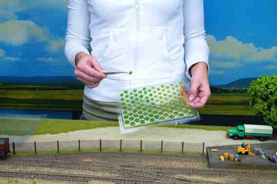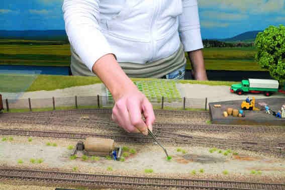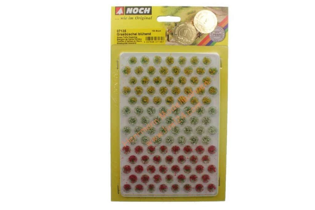 Die Herausforderung, aus einer einheitlich begrasten Fläche eine natürlich wirkende Vegitation zu zaubern, wird mit der Innovation «Grasbüschel« von NOCH so einfach wie nie zuvor. Jede Packung Grasbüschel beinhaltet 105 einzelne Büschel aus extralangen Grasfasern (6 mm) in jeweils zwei Farben. Die Grasbüschel werden einfach an die gewünschte Stelle auf der Modell-Landschaft geklebt. So lassen sich hohe Gräser am Wegesrand, an Uferböschungen oder am Waldrand einfach gestalten. Auch Grasnarben auf Wegen und neben den Bahngleisen sind mit den Grasbüscheln von NOCH kein Problem.105 Grasbüschel blühend: Sattgrüne Grasbüschel, die an den Spitzen mit verschiedenfarbigem Blütenflock veredelt sind.