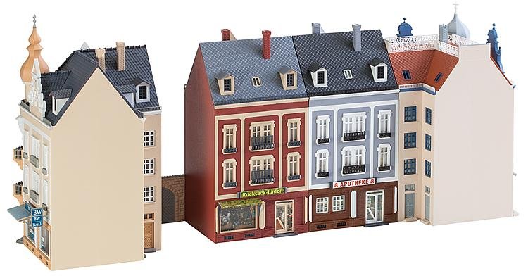 Lebendige Stadtszene! Die aus 4 Gebäuden bestehende Stadtzeile mit 2 Eck- und 2 Reihenhäusern bietet viele Variations- und Kombinationsmöglichkeiten. Im Erdgeschoss der einzelnen Häuser befinden sich jeweils Laden- und Geschäftsräume. In den oberen Etagen sind typische Altstadtwohneinheiten untergebracht. Die beiden Reihenhäuser können auch halbiert gebaut werden.