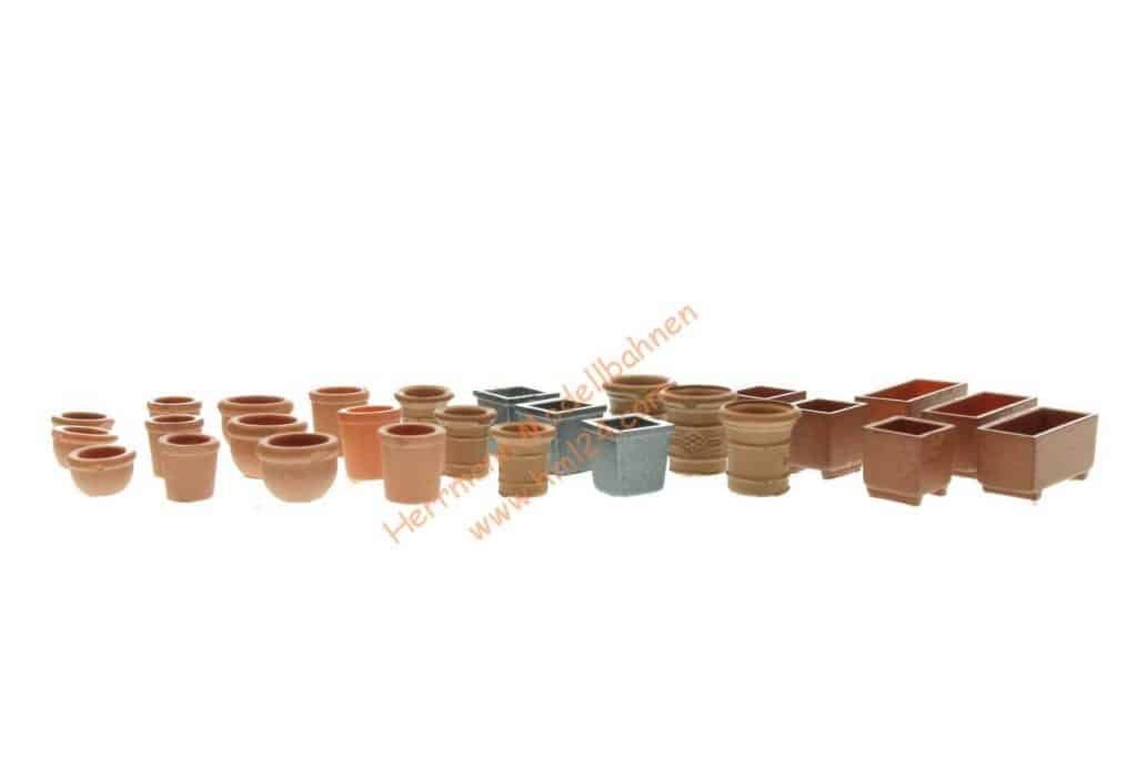 – Blumentöpfe, 27 Blumentöpfe und -tröge