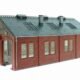 Lokschuppen und Wasserturm sind auch einzeln aufstellbar. Den Wasserbehälter erreicht man über eine filigrane Leiter. Einständiger Lokschuppen für Loks bis 208 mm Gesamtlänge.