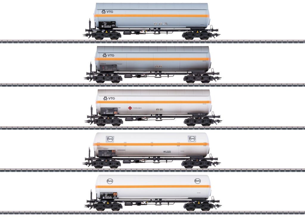 – 5 vierachsige Druckgas-Kesselwagen mit und ohne Sonnenschutzdach