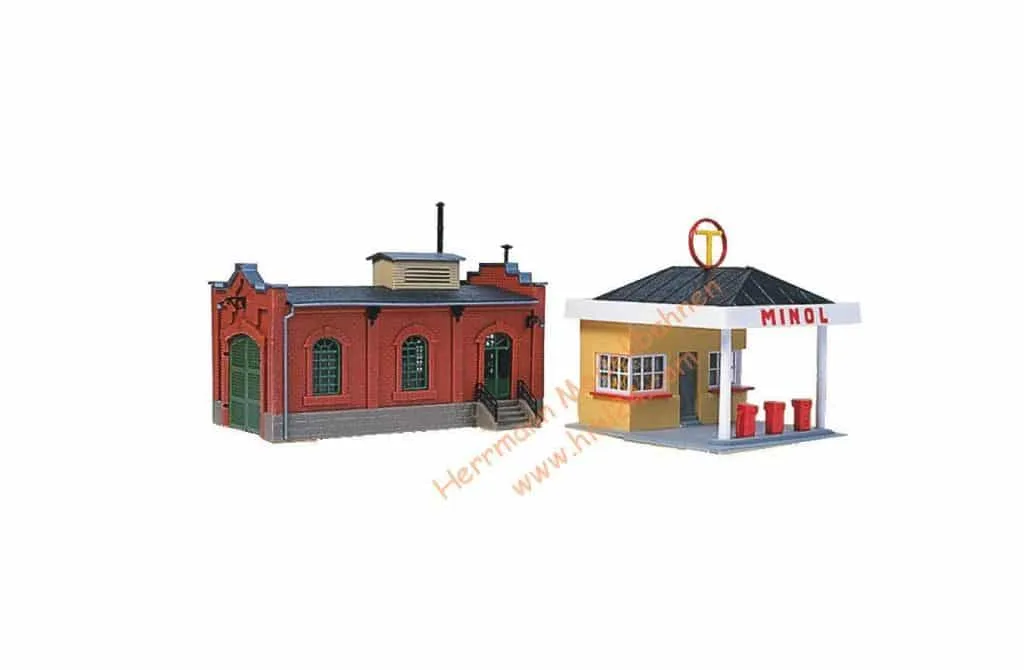 Ein kleiner Reparaturbetrieb ca. 1890 erbaut. In den 30er Jahren wurden die alten Tanksäulen durch dieses Tankstellengebäude ersetzt. Torflügel sind manuell beweglich.