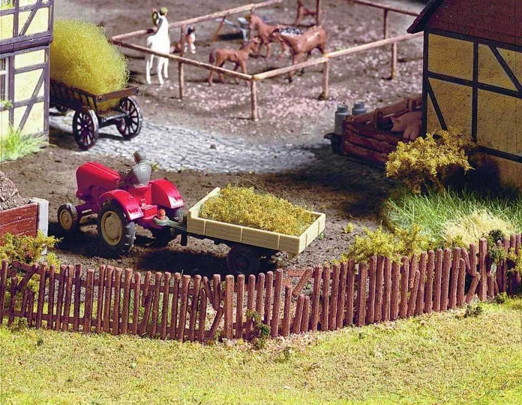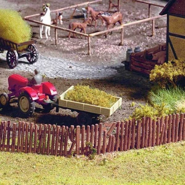 Jedes Set enthält alle Einzelteile, um einen 90 bis 100 cm langen Zaun in Spur H0 zu gestalten. Dank der vielfältigen Elemente können Sie damit die unterschiedlichsten Zaunkombinationen realisieren. Je nach Zauntyp finden Sie gerade Stücke, Gartentore, Einfahrten, zerfallene Zaunpartien und vieles mehr. Aufgrund einer aufwändigen Handbemalung wirken die Holzzäune bis ins Detail wie im Original.
