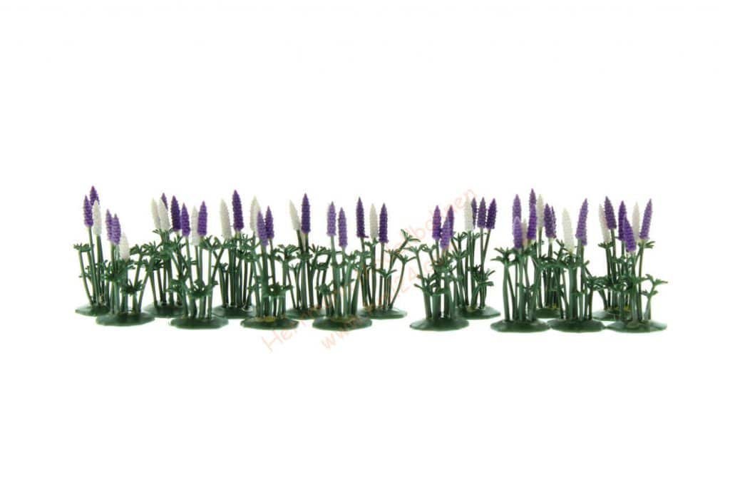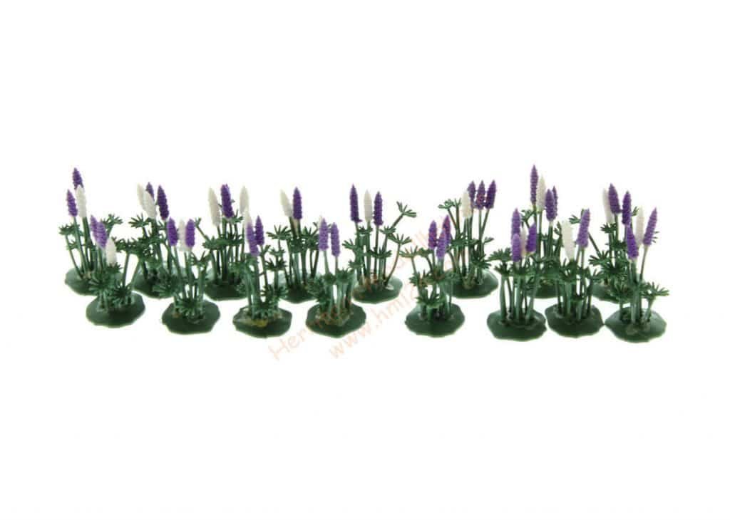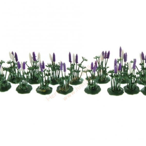 Bausatz für 16 Lupinenstauden mit jeweils mindestens 3 Blüten und 9 Blättern (einschließlich Grundplatten). Die Farben der Blüten entsprechen dem typischen Bewuchs am Waldrand und Feldern in verschiedenen Violett-Farbtönen.