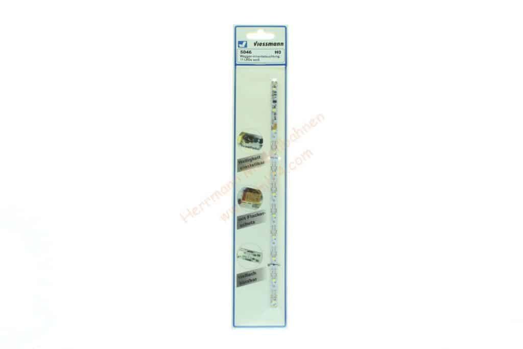 Vielfach teilbare Innenbeleuchtung mit wartungsfreien, stromsparenden LEDs und hellem Licht. Helligkeit durch Potentiometer einstellbar. Geeignet für Waggons aller Hersteller, die für Beleuchtung vorgesehen sind. Befestigung der Platinen unter dem Waggondach. Durch Kürzen können die Platinen auf jede Waggonlänge angepasst werden. Flackerschutz und Konstantstromquelle für gleichbleibend helles Licht integriert. Die Stromversorgung erfolgt entweder durch am Waggon vorhandene Schleifer / Kontaktsätze oder durch unsere stromführenden Kupplungen Art. 5048 / 5071. Für Gleich-, Wechsel- und Digitalstrom geeignet. Anschlussmöglichkeit für Zugschlussbeleuchtung, z. B. Art. 5056.