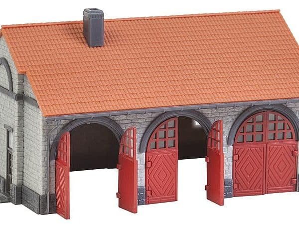 Massives Spritzenhaus ermöglicht die Unterstellung von Einsatzfahrzeugen und Gerätschaften oder auch die Nutzung als Werkstatt. In deutlichem Kontrast zur Naturstein-Fassade stehen drei rote Klapptore mit Rundbogeneinfassung. Ein weiteres Tor auf der Gebäuderückseite ermöglicht auch die Durchfahrt.